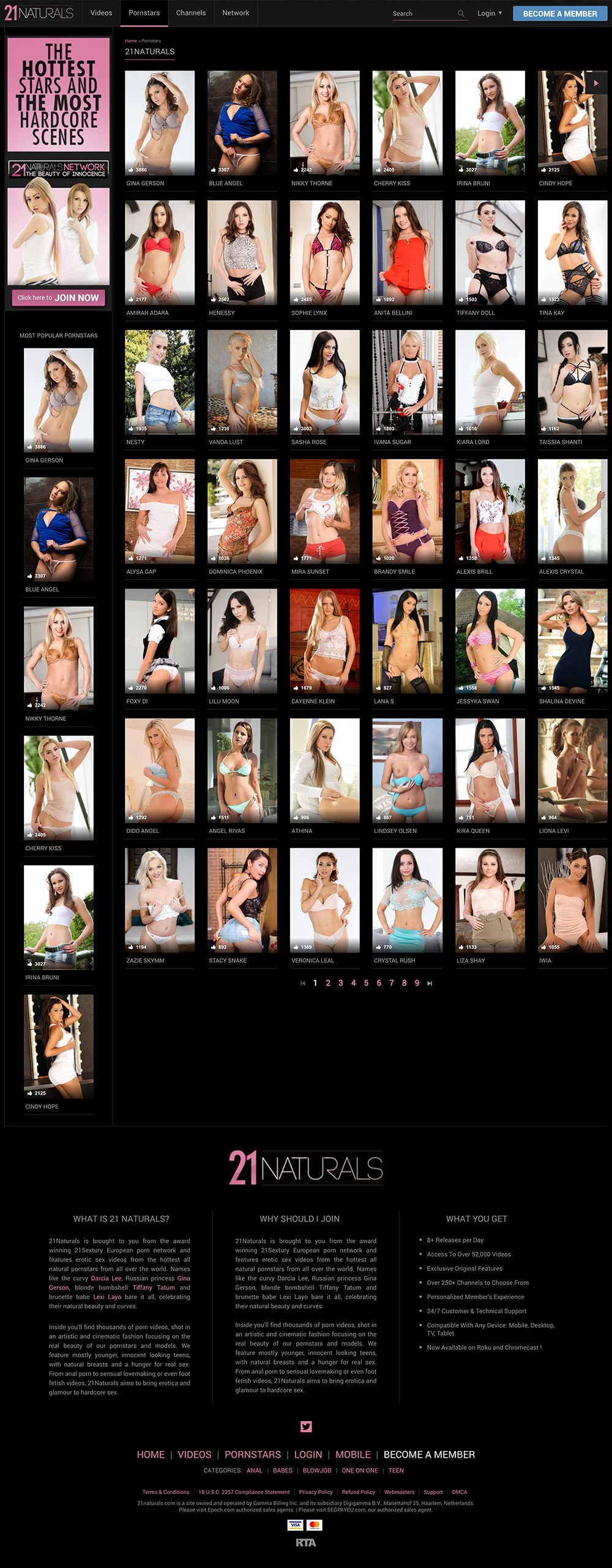 21 Naturals is cumming to you from the European award-winning 21 Sextury adult network and showcases the hottest all natural pornstars from all over the globe. Names like the Russian princess Gina Gerson, blonde bombshell Tiffany Tatum, curvy Darcie Lee and brunette babe Lexi Layo showing their natural curves and stunning beauty. 21 Natural feature young innocent looking teens, natural tits and an insatiable appetite for real sex. From sensual lovemaking to anal porn, 21 Naturals brings young girls and erotica to hardcore sex.
